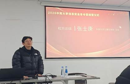 2026年1月31日,冬令营迎来了结营仪式。结营仪式上,顺利完成培训并通过考核的同学获得了结业证书,对最佳攻击手和最佳防御手进行了表彰。网络空间安全系张士庚主任还就本次冬令营的课程设计、实战演练、学员表现进行整体复盘,肯定学员在技术学习和团队协作中的投入与收获,同时向学员们表达了未来的期许。