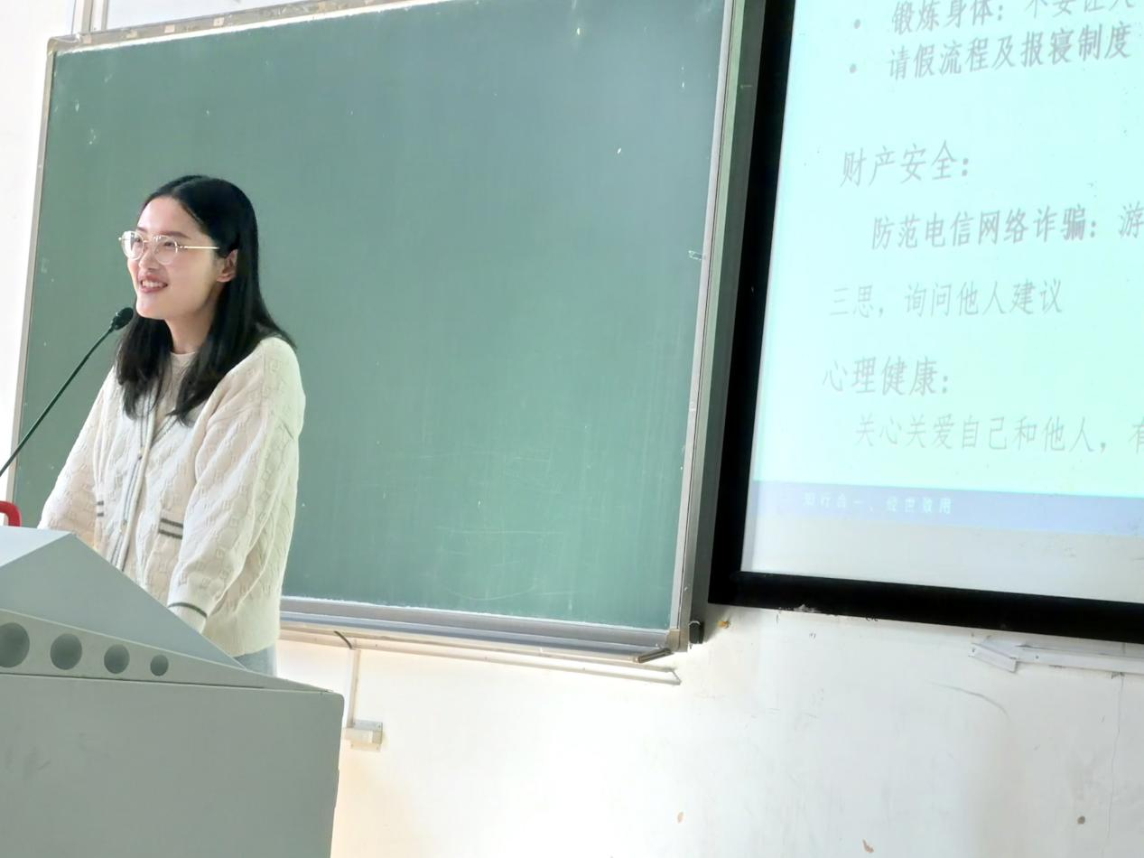 会议伊始,辅导员老师与同学们回顾了此前团辅活动中的点滴感悟,拉近了彼此距离。随后,辅导员重点强调了人身、财产及心理健康等安全问题,提醒同学们保持警惕、学会求助,为大学生活筑牢安全基础。会上还介绍了学校官网、学工办、教务办等重要平台,讲解了课程请假与外出流程,帮助新生熟悉校园规范。