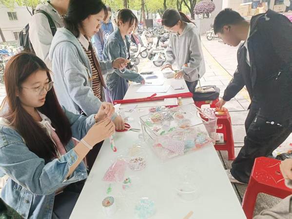 朋辈心理互助会于麓南校区二食堂前坪成功举办“手作暖时光·趣味聚心助”积极心理体验营。本次活动面向全体学生,旨在通过多元趣味互动,帮助同学们释放压力、探索自我,并在朋辈关爱中传递积极心理力量。